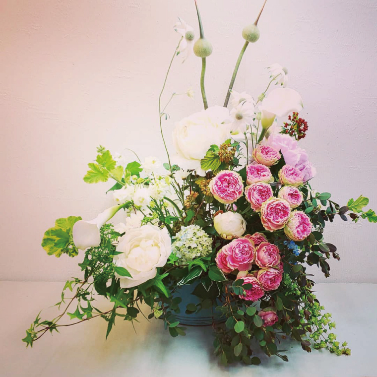 当フラワーアレンジメント教室の作品を